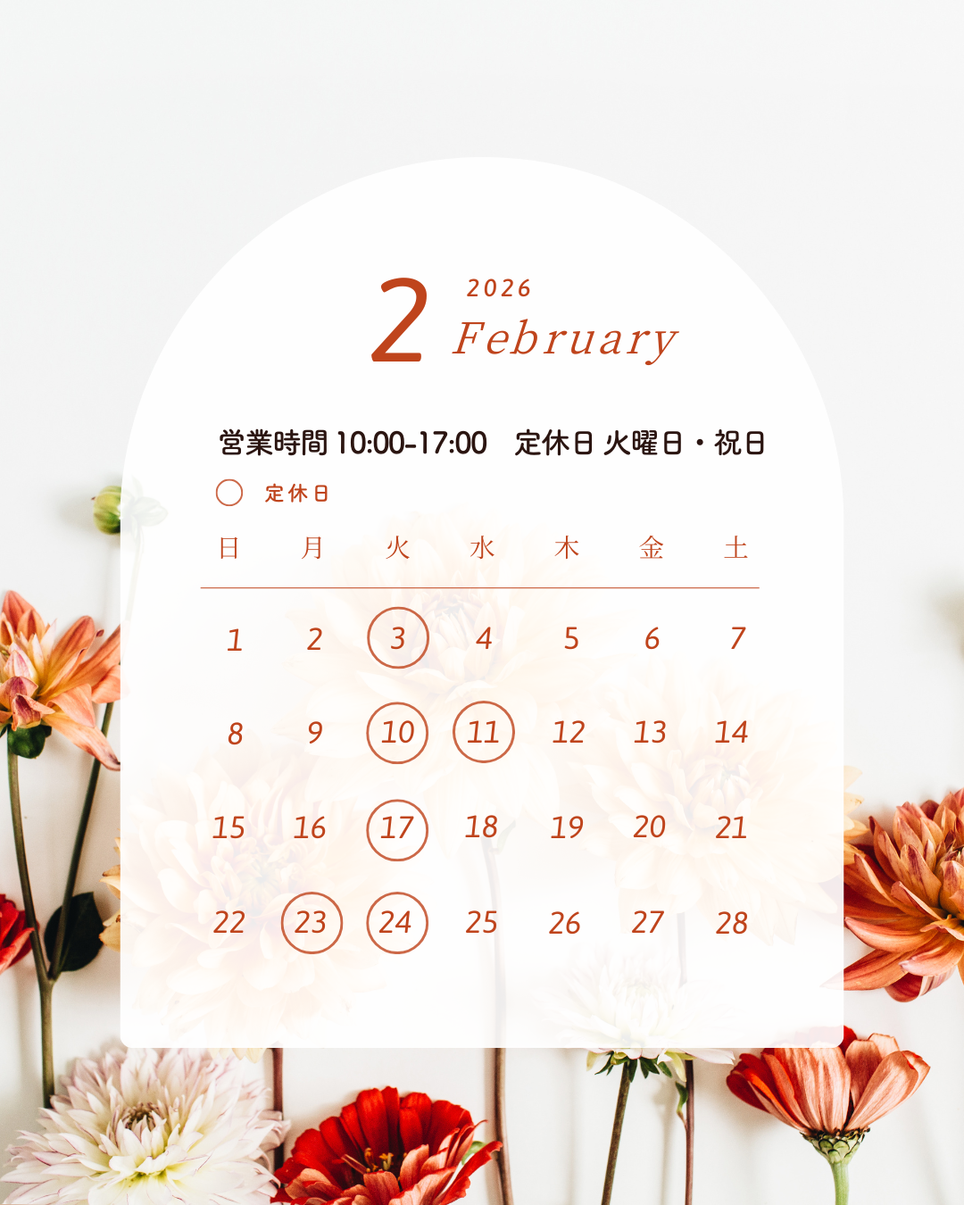2月休みのお知らせ 2026 01/29 Published 2026.01.29 / sato \ この記事を共有 / B! リンクをコピーする 2月休みのお知らせ sato B! リンクをコピーする 2月は下記の日程が連休となります。 2月10日(火)・11日(水) 2月23日(月)・24日(火) 家族の介護のため、視力測定・ジュエリーリフォームは【ご予約制】とさせていただいております。 お電話またはLINEにてご予約をお願いいたします。 LINEで相談▷ HP▷
