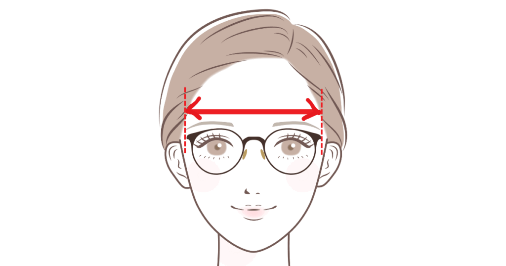 それは左右の眉尻から眉尻までの長さ。これにフレームの端から端までの長さを合わせましょう。大きすぎず小さすぎず、ズレにくいサイズのフレームを選べます。