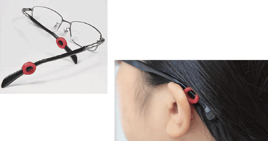 100均などで手軽に買える、ずり落ち防止アイテムがあります。鼻パッドやつる(メガネの横棒)に取りつけてメガネを固定します。ただアイテムによっては一度付けると外せなくなったり、人によってはつけ心地がよくないと感じる場合もあるので注意が必要です。